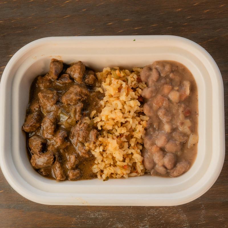 • Carne Guisada w/ Spanish Rice & Charro Beans